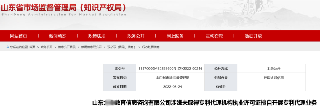 行政相對(duì)人名稱:山東XX教育信息咨詢有限公司
