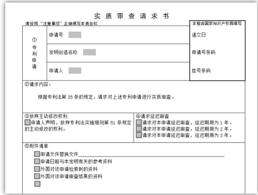 發(fā)明專利申請(qǐng)的“延遲審查”實(shí)行請(qǐng)求制,請(qǐng)求人需要在提交發(fā)明專利申請(qǐng)“實(shí)質(zhì)審查請(qǐng)求書”時(shí),在第④欄進(jìn)行勾選(詳見(jiàn)下圖)。