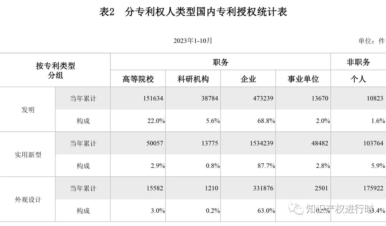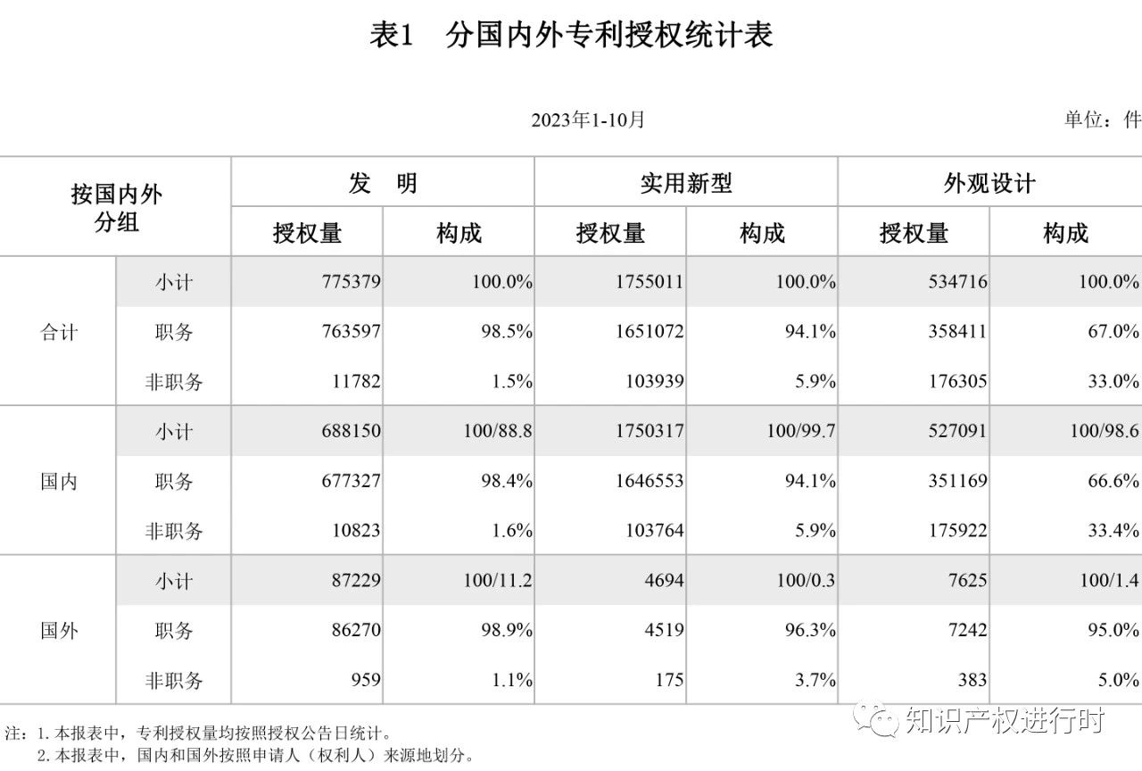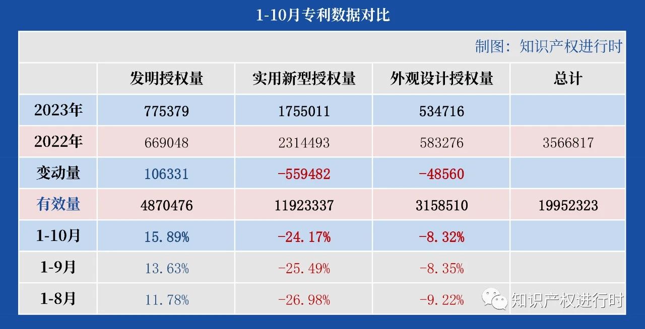 今日,國家知識產(chǎn)權(quán)局網(wǎng)站公布2023年10月知識產(chǎn)權(quán)主要統(tǒng)計(jì)數(shù)據(jù);與2022年同期對比: