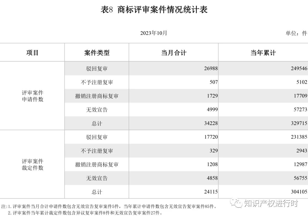 2023年10月國家知識產(chǎn)權(quán)局審查注冊登記統(tǒng)計(jì)月報(bào) 全文