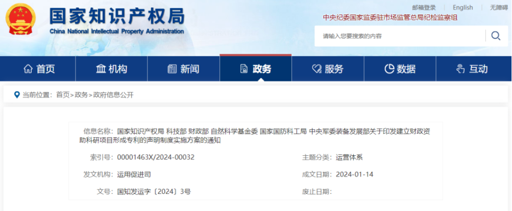 此前,國家知識(shí)產(chǎn)權(quán)局等6部門聯(lián)合印發(fā)了關(guān)于印發(fā)建立財(cái)政資助科研項(xiàng)目形成專利的聲明制度實(shí)施方案的通知,《通知》中要求:提交財(cái)政科研項(xiàng)目專利的項(xiàng)目承擔(dān)單位或個(gè)人需要在專利申請(qǐng)受理后進(jìn)行聲明;如專利申請(qǐng)已受理尚未授權(quán),需在2024年6月30日前集中補(bǔ)充提交聲明。