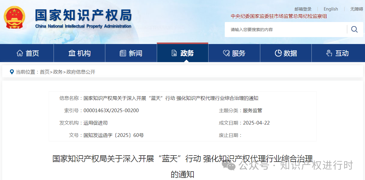 國(guó)知局:2025年集中整治代理非正常申請(qǐng)專利行為、重拳打擊無資質(zhì)專利代理行為、清理專利代理師“掛證”行為。深入開展“藍(lán)天”行動(dòng)