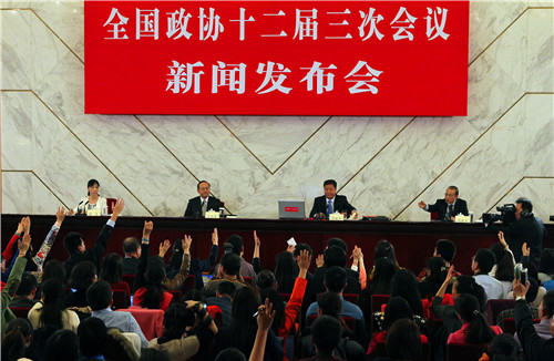 3月2日下午3點(diǎn),全國(guó)政協(xié)十二屆三次會(huì)議新聞發(fā)布會(huì)在人民大會(huì)堂新聞發(fā)布廳召開(kāi),新聞發(fā)言人呂新華向中外媒體介紹本次大會(huì)有關(guān)情況并回答記者提問(wèn)。