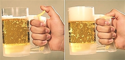 泡泡啤酒杯 按下手柄上的按鈕,雪白的啤酒泡就會(huì)充滿整個(gè)杯子。