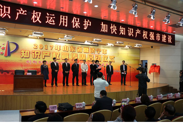 為慶祝第十七個(gè)世界知識(shí)產(chǎn)權(quán)日,提升全社會(huì)知識(shí)產(chǎn)權(quán)意識(shí),促進(jìn)大眾創(chuàng)業(yè)萬眾創(chuàng)新,4月20日上午,山東省暨濟(jì)寧市知識(shí)產(chǎn)權(quán)宣傳周啟動(dòng)儀式在濟(jì)寧職業(yè)技術(shù)學(xué)院文體中心隆重舉行,取得圓滿成功。國(guó)家知識(shí)產(chǎn)權(quán)局專利管理司原司長(zhǎng)馬維野,國(guó)家知識(shí)產(chǎn)權(quán)局專利局專利審查協(xié)作天津中心副主任楊帆,山東省知識(shí)產(chǎn)權(quán)局局長(zhǎng)于智勇,濟(jì)寧市人民政府副市長(zhǎng)吳霽雯,濟(jì)寧職業(yè)技術(shù)學(xué)院院長(zhǎng)李新斗,國(guó)家知識(shí)產(chǎn)權(quán)局專利局專利審查協(xié)作天津中心社會(huì)服務(wù)辦公室主任饒剛,山東省知識(shí)產(chǎn)權(quán)局辦公室主任劉春林,濟(jì)寧市科學(xué)技術(shù)局局長(zhǎng)王亞棟,濟(jì)寧市知識(shí)產(chǎn)權(quán)局局長(zhǎng)錢寶光,上海弼興知識(shí)產(chǎn)權(quán)代理有限公司主任薛琦,中知認(rèn)證公司總經(jīng)理余平等領(lǐng)導(dǎo)專家出席活動(dòng)。