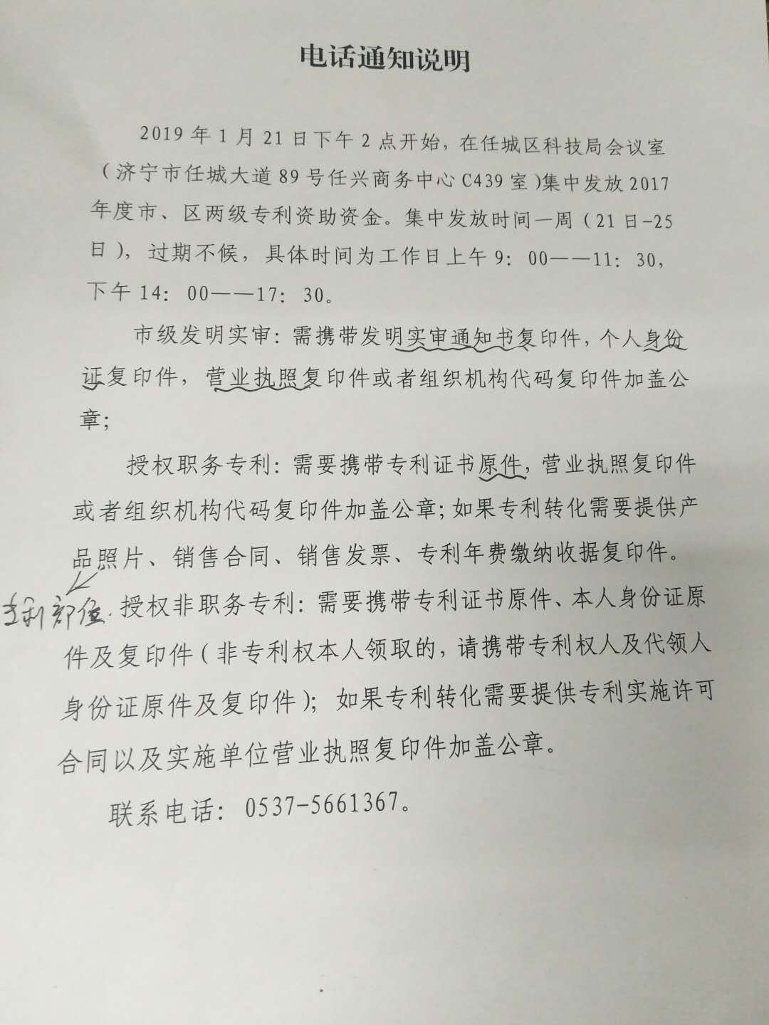 大家好!濟寧市任城區(qū)知識產(chǎn)權局將于本周開始發(fā)放17年授權的專利資助,專利資助領取地點為濟寧市任城大道與琵琶山路交叉口向北走任興商務中心C439室,若有接到領取資助電話的客戶請及時領取資助。